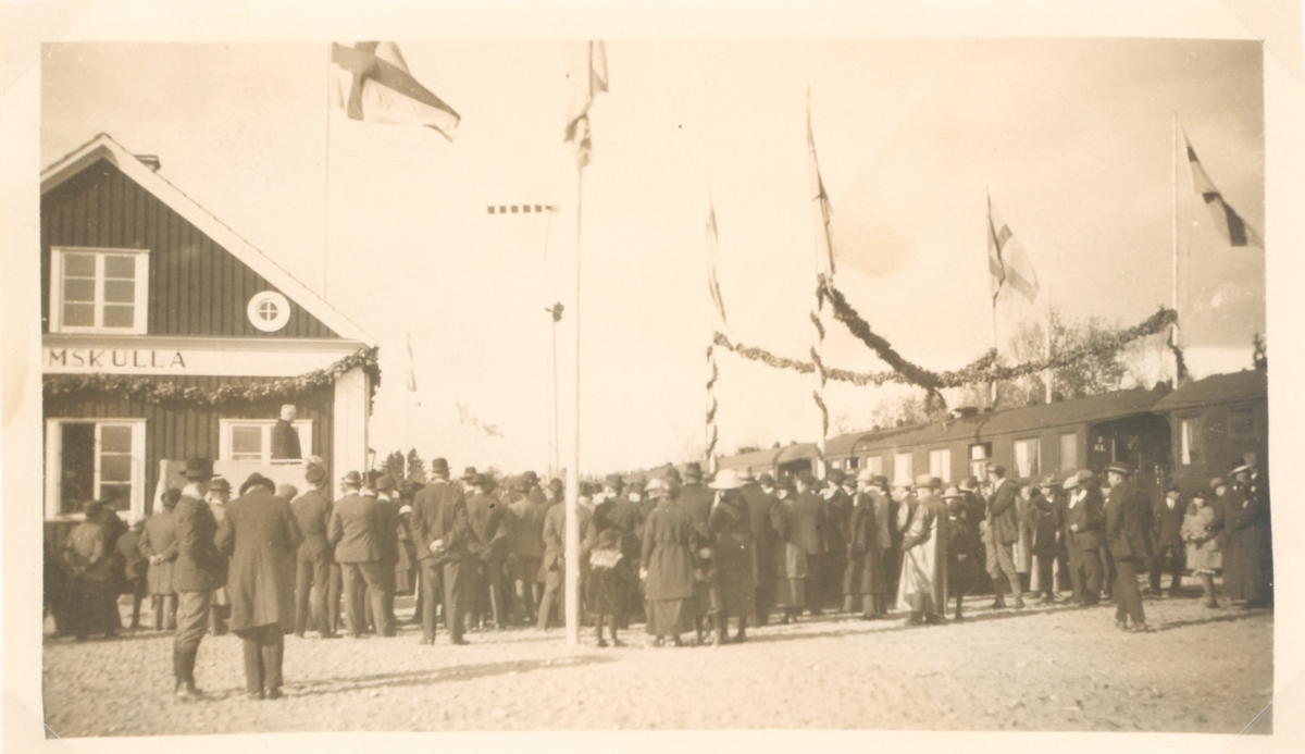 Titel: Från den vid Ydrefors station under år 1924 av Landshövding J Falk förrättade invigningen av Vimmerby - Ydre Järnväg.