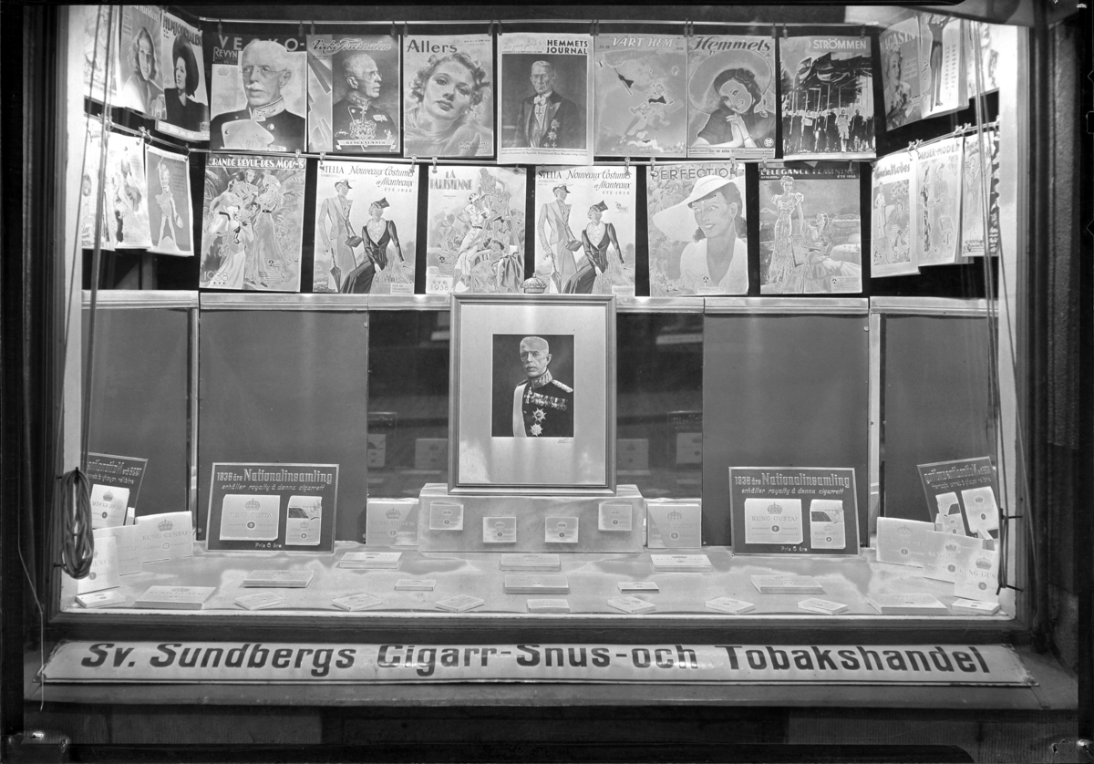 Skyltning inför kung Gustaf V:s 90-årsdag.