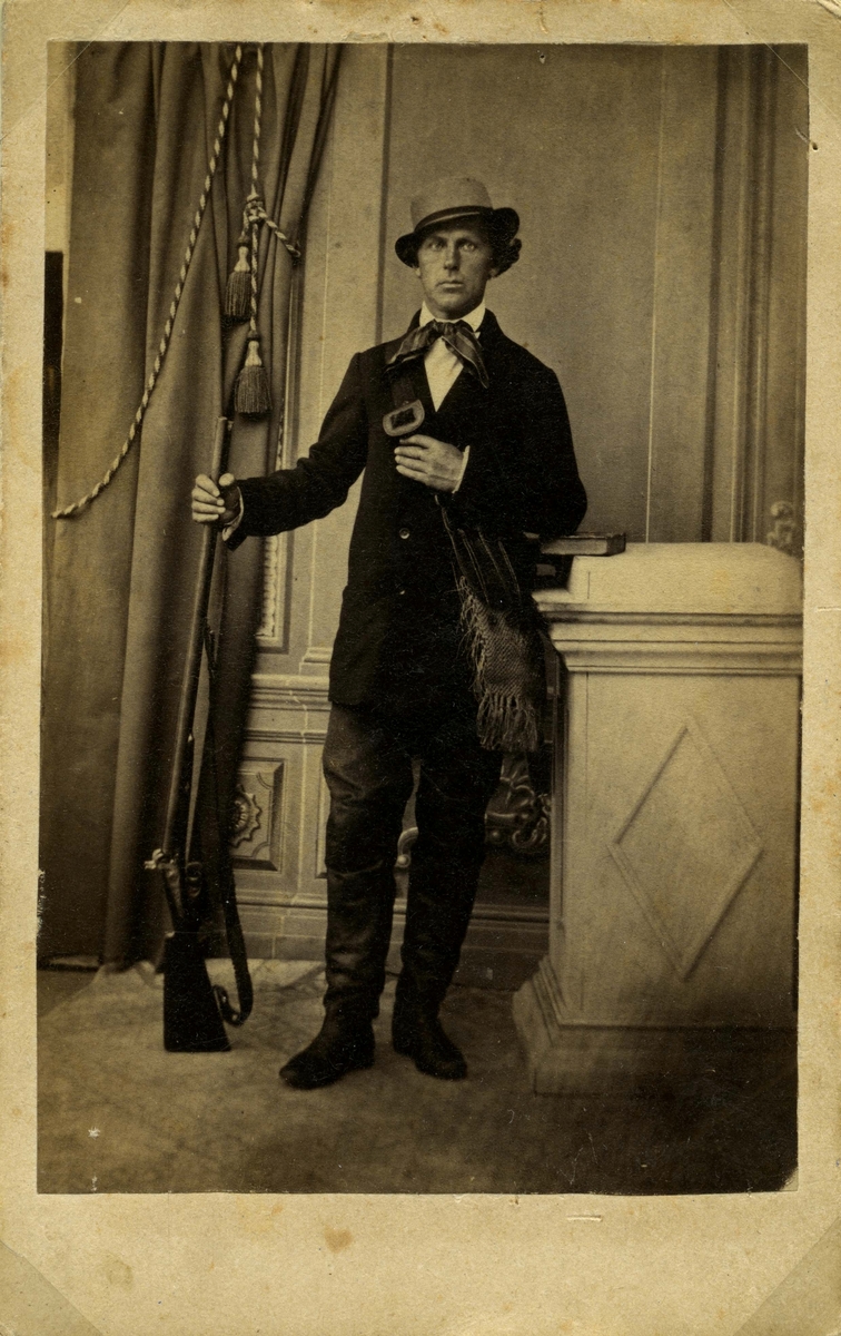 Kramer, Albert med ett gevär. Grosshandlare. Levde mellan 1818 - 1899.