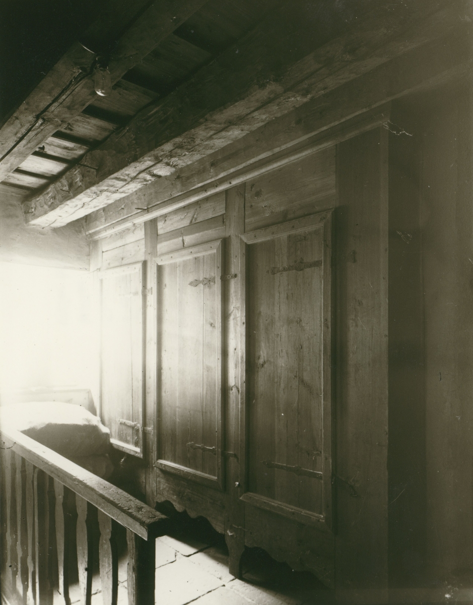 Ett räcke, skåp och fönster i en bostad i kvarter Landshövdingen.