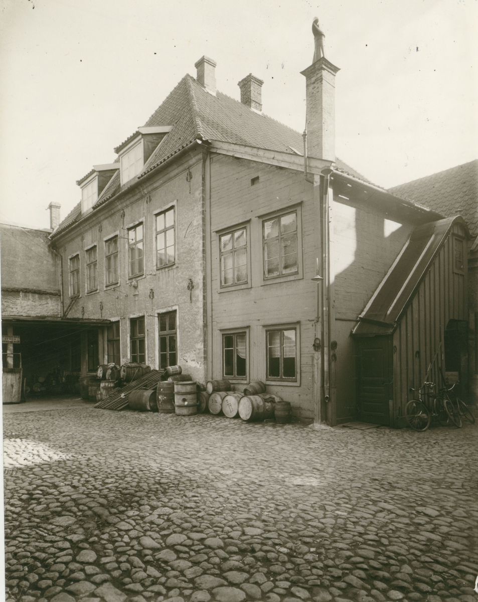 En innegård tunnor och cyklar vid en bostad i kvarteret Landshövdingen.