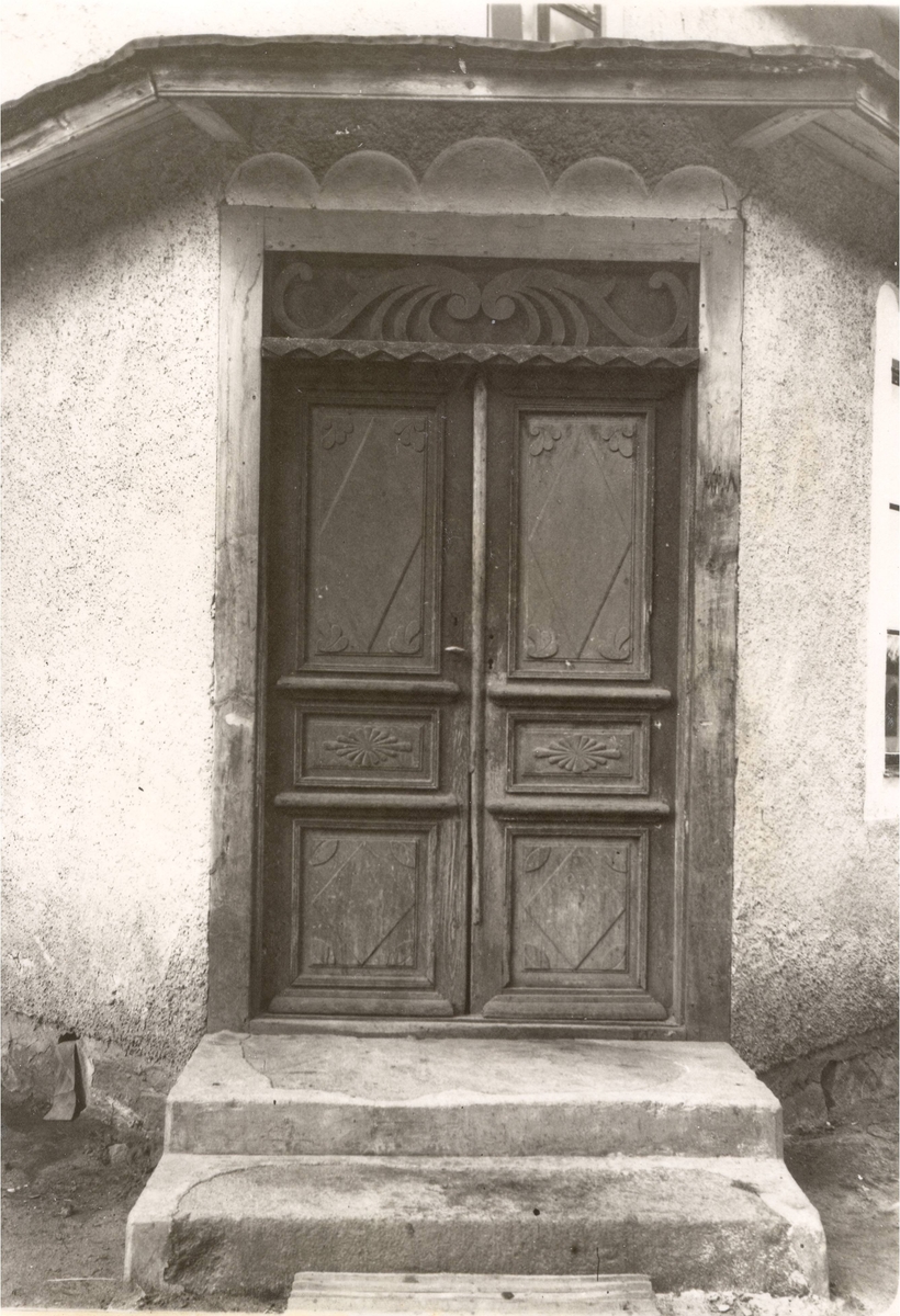 Huvudbyggnaden: Dörr på främre långsidans kvist.
