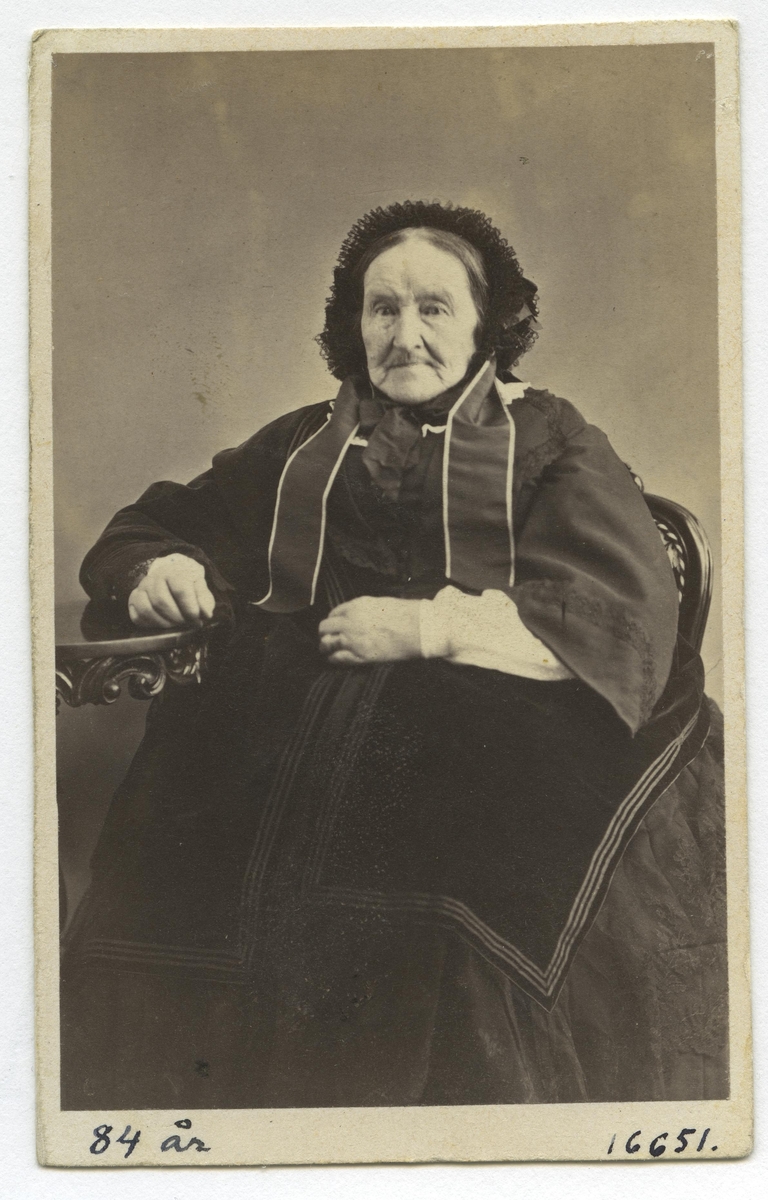 Carolina Adlersparre, född von Arbin. Född 1782. Död 1871 på Brod. Maka till landshövding Axel Adlersparre. Moder till Sophie Adlersparre. Bodde i Söderåkra på ålderdomen. Skall ha varit 84 år när denna bild togs.