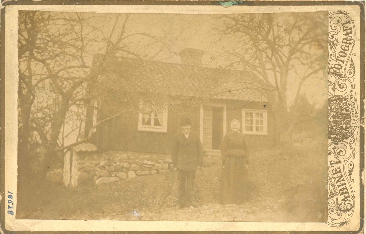 Avskedade båtsman Carl Ny, roten nummer 76 Århult, efter avskedandet, vid sitt torp Mesebusa vid Duveström.