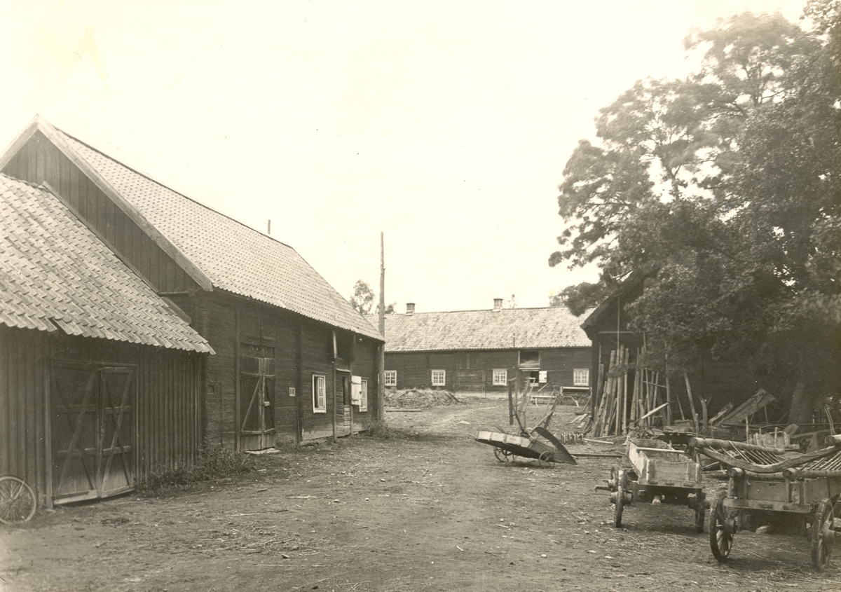 En ladugård i Herrstorp. Till vänster: vagnbod och stall. Till höger: loge. I mitten: fähus.