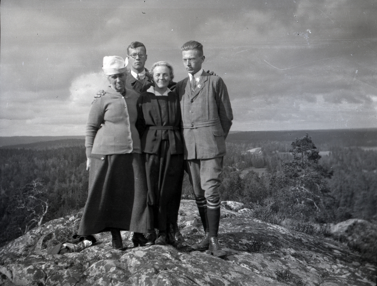 Titel: Från vänster till höger: Ada Rydström, Kurt Seidler, Nina Hammarskjöld, och Gustaf Seidler på Frubergets topp.