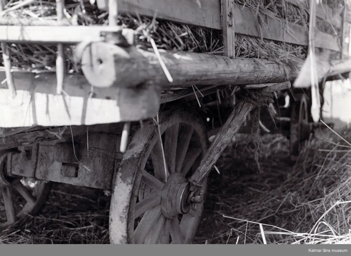 Bakre delen av en lastad halmskrinda.