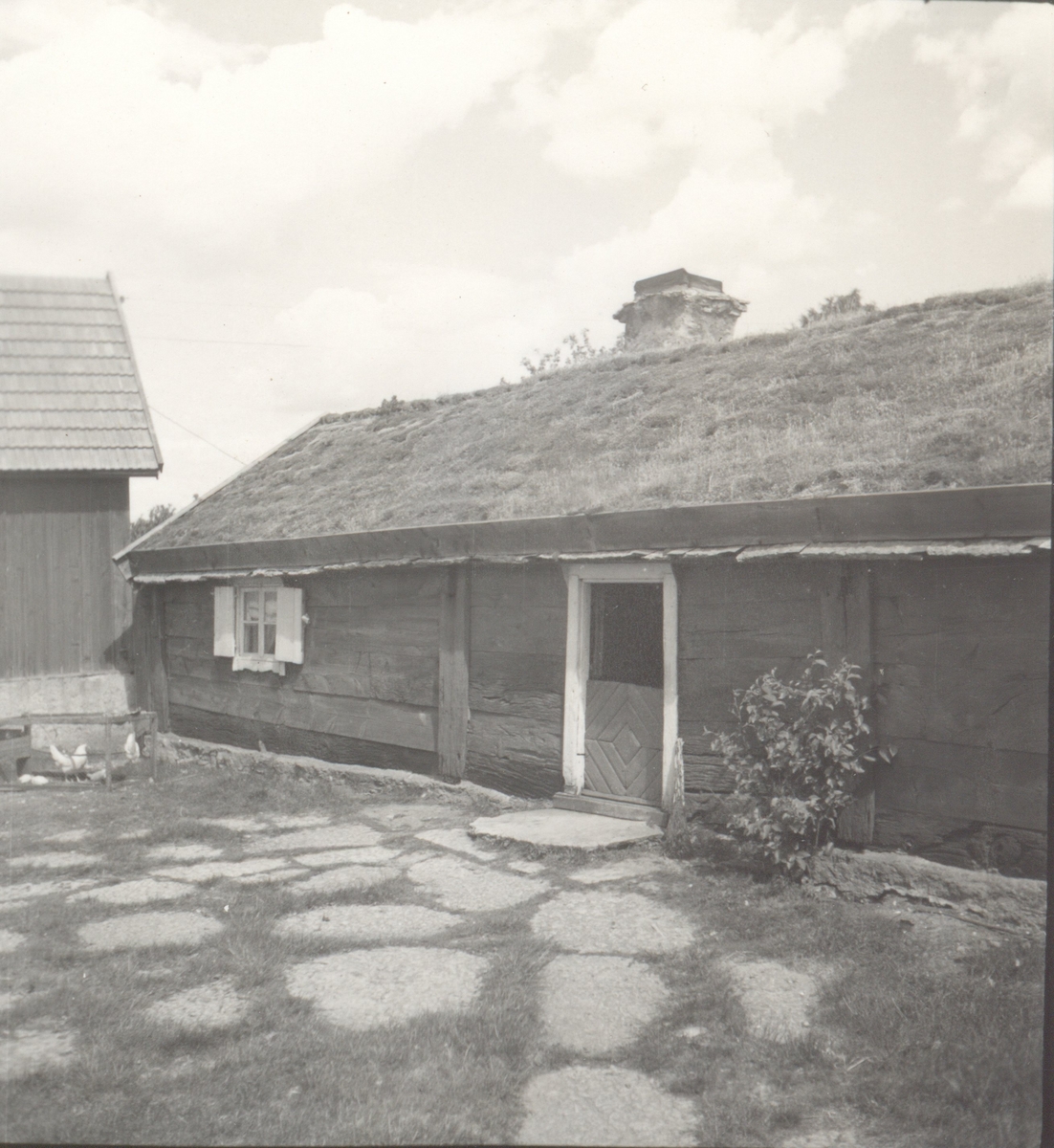 Ett bostadshus i skiftskonstruktion och torvtak i Folkeslunda. Byggd omkring 1816.