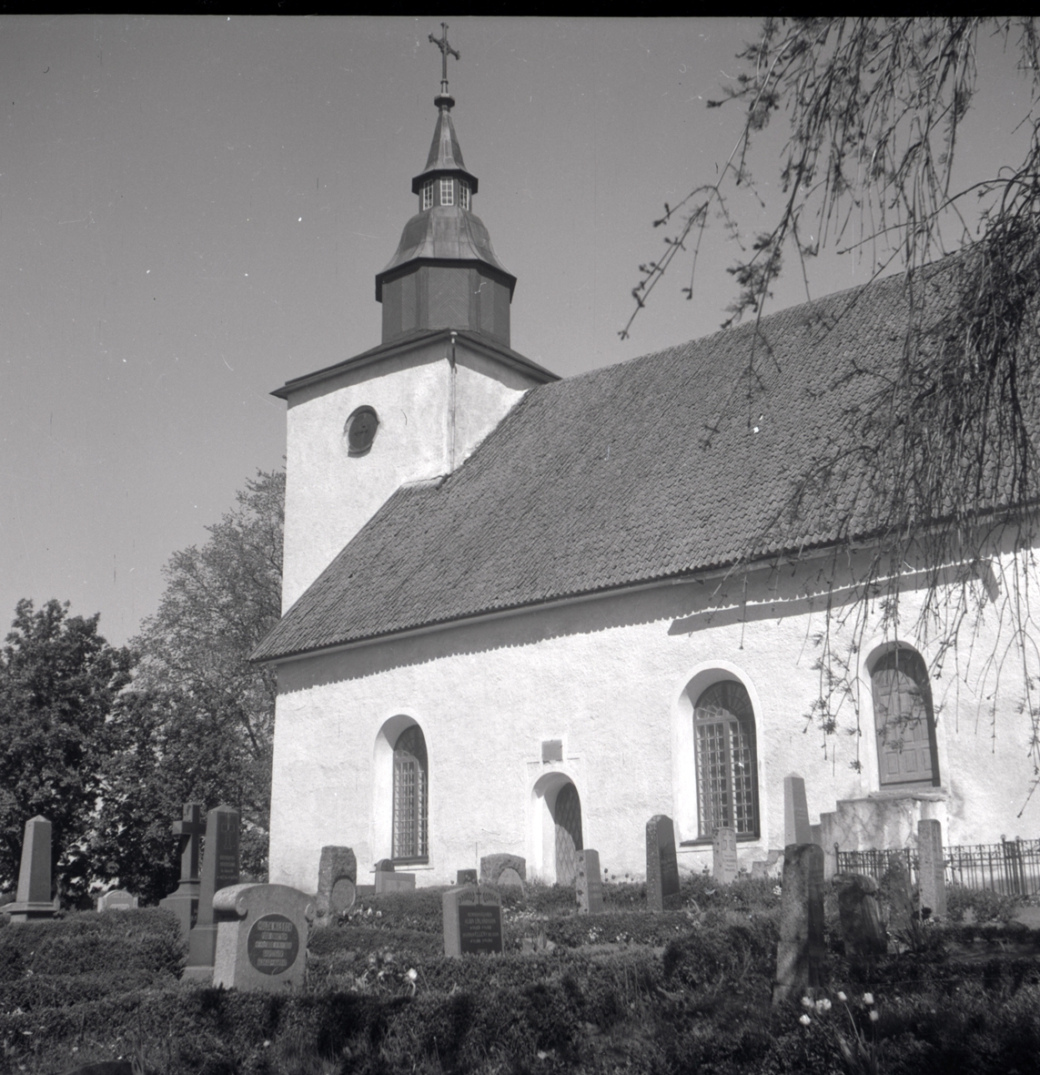 Kyrkan med kyrktorn och kyrkogård i Döderhult socken.