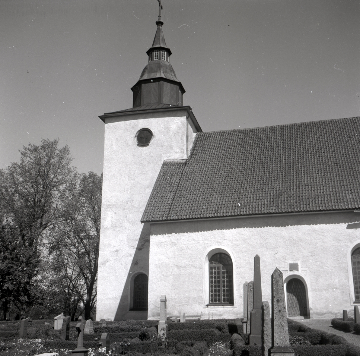 Kyrkan med kyrktorn och kyrkogård i Döderhult socken.
