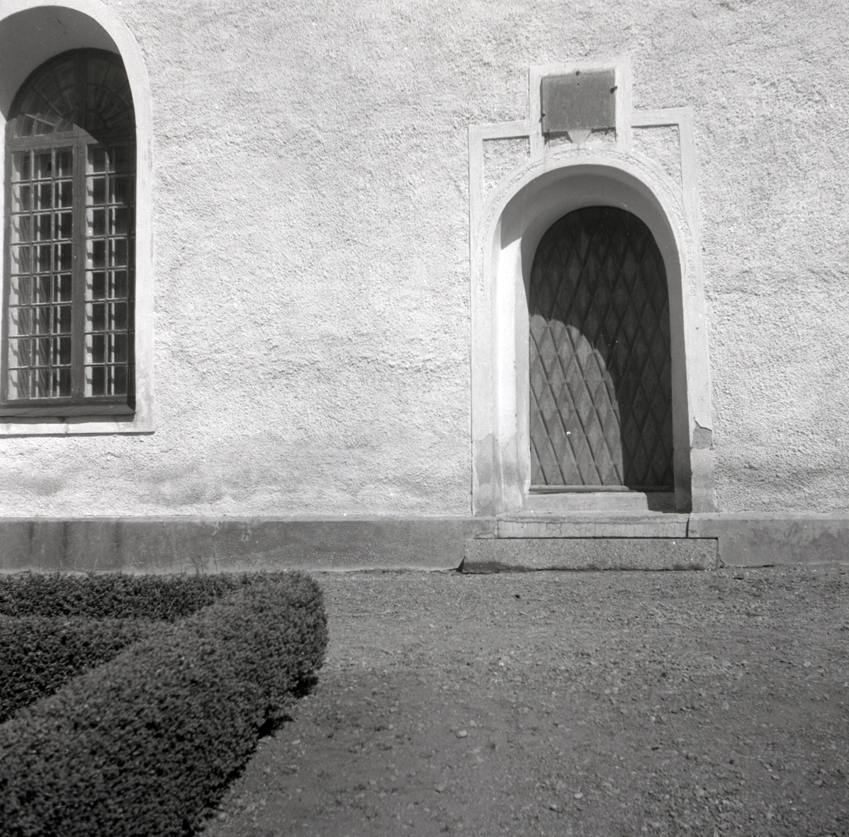 Ett fönster ooch en dörr in till kyrkan i Döderhults socken.