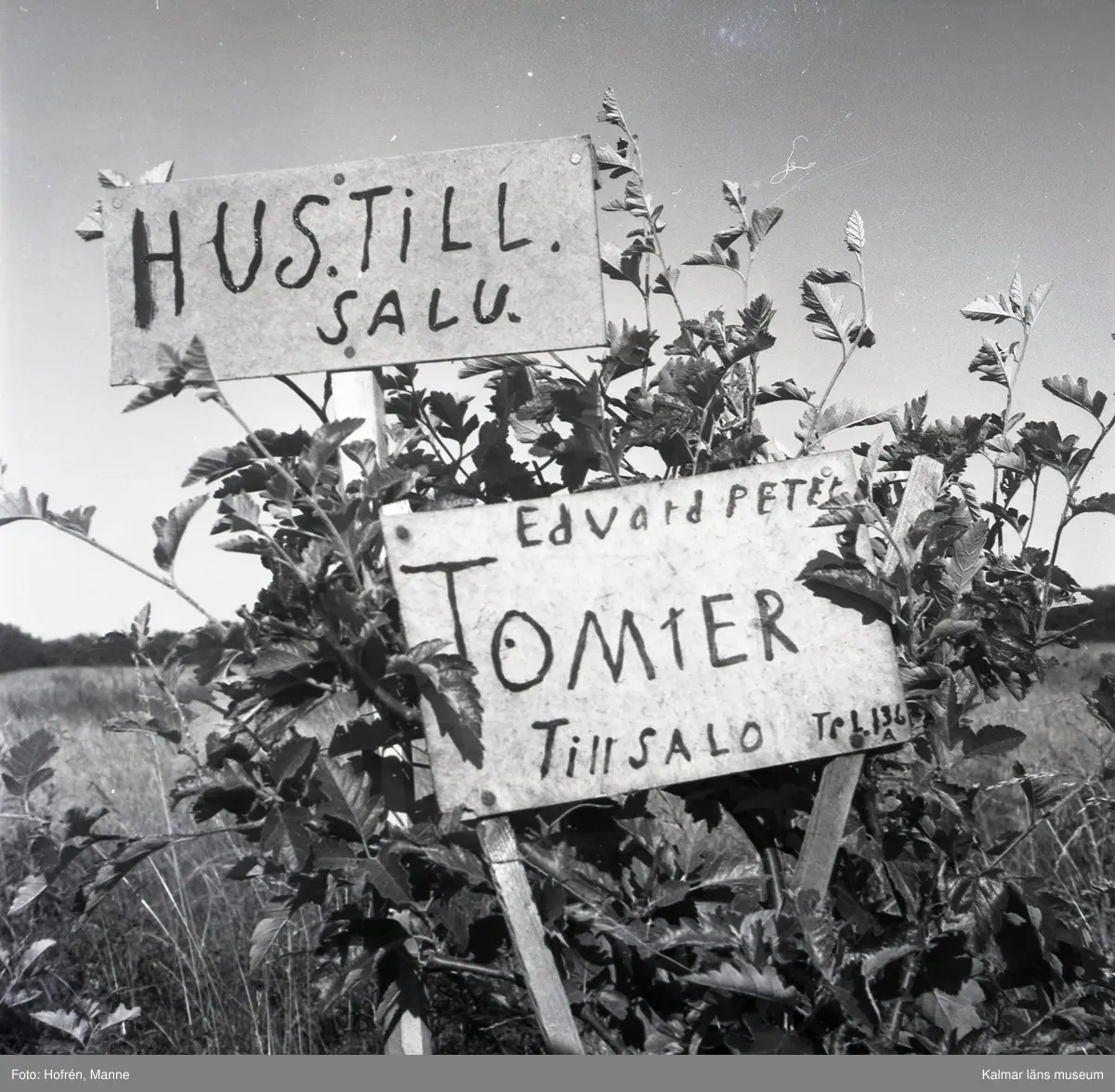 Skyltar angående tomtförsäljning i Eskilsund.