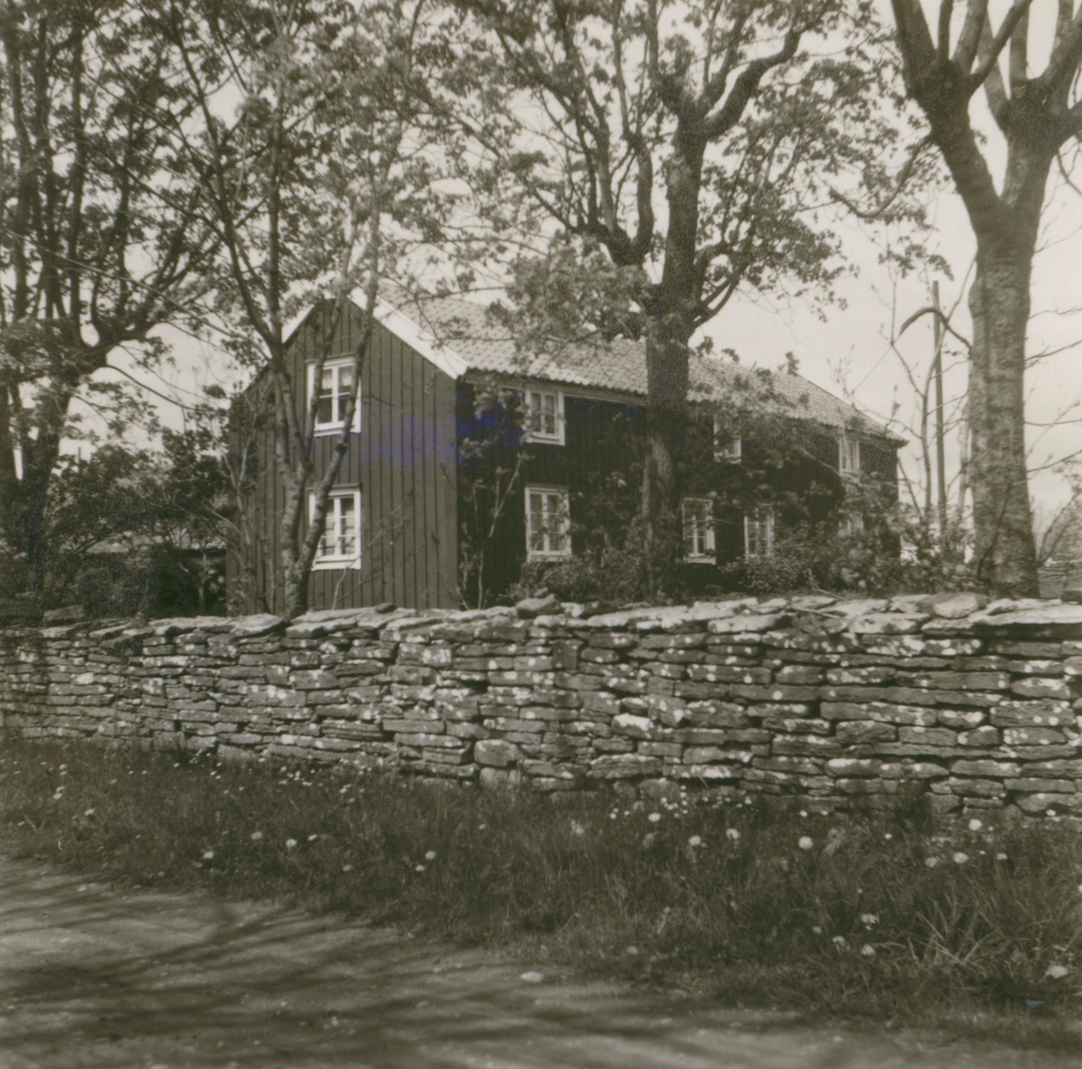 En enfamiljsbostad bakom en stenmur i Algutsrum.