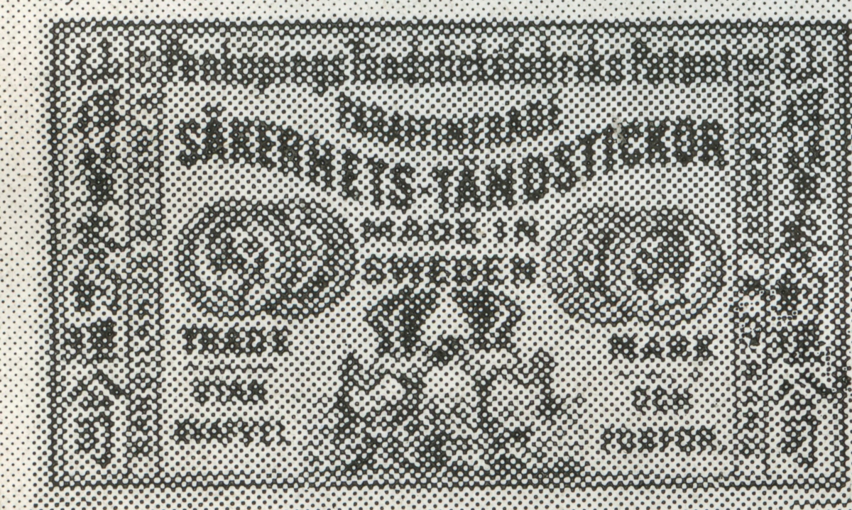 Tändsticksetikett från Jönköpings tändsticksfabrik, "Paraffinerade Säkerhets-tändstickor"