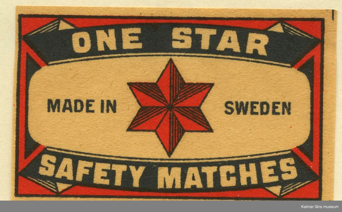 Tändsticksetikett från Mönsterås Tändsticksfabrik, "One Star Safety Matches"