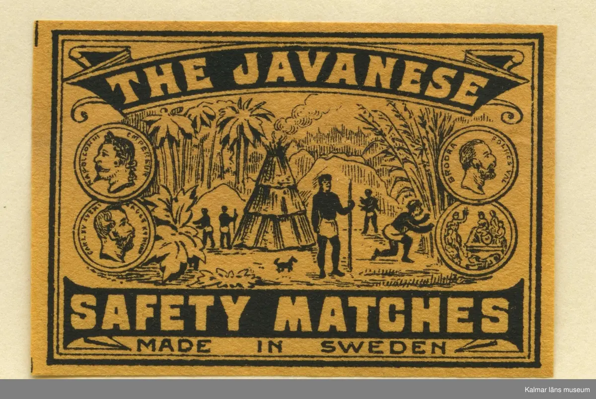 Tändsticksetikett från Mönsterås Tändsticksfabrik, "The Javanese Safety Matches"