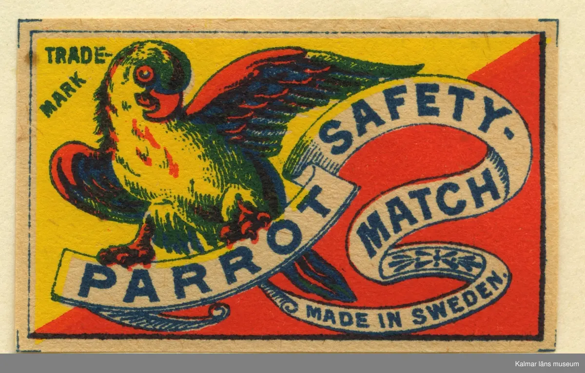 Titel: Tändsticksetikett från Mönsterås Tändsticksfabrik, "Parrot Safety match"