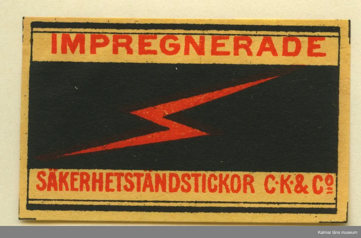 Tändsticksetikett från Mönsterås Tändsticksfabrik, "Impregnerade säkerhetständstickor C-K & Co. "