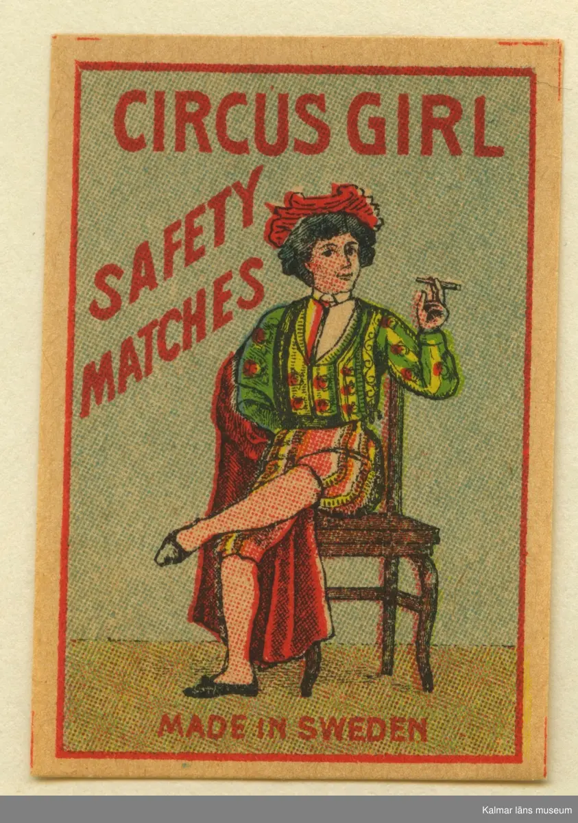 Tändsticksetikett från Mönsterås Tändsticksfabrik, "Circus girl safety matches"