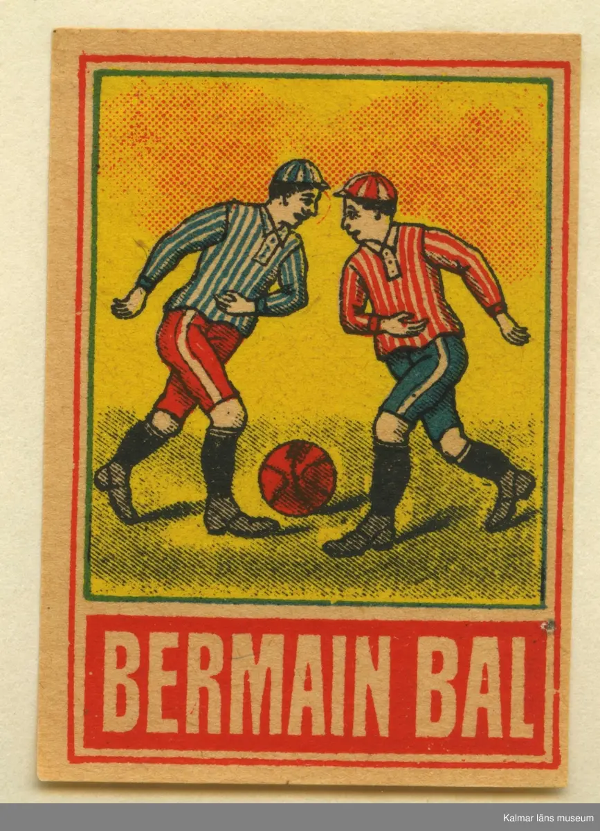 Tändsticksetikett från Mönsterås Tändsticksfabrik, "Bermain Bal" (Malaysiska för bollspel)