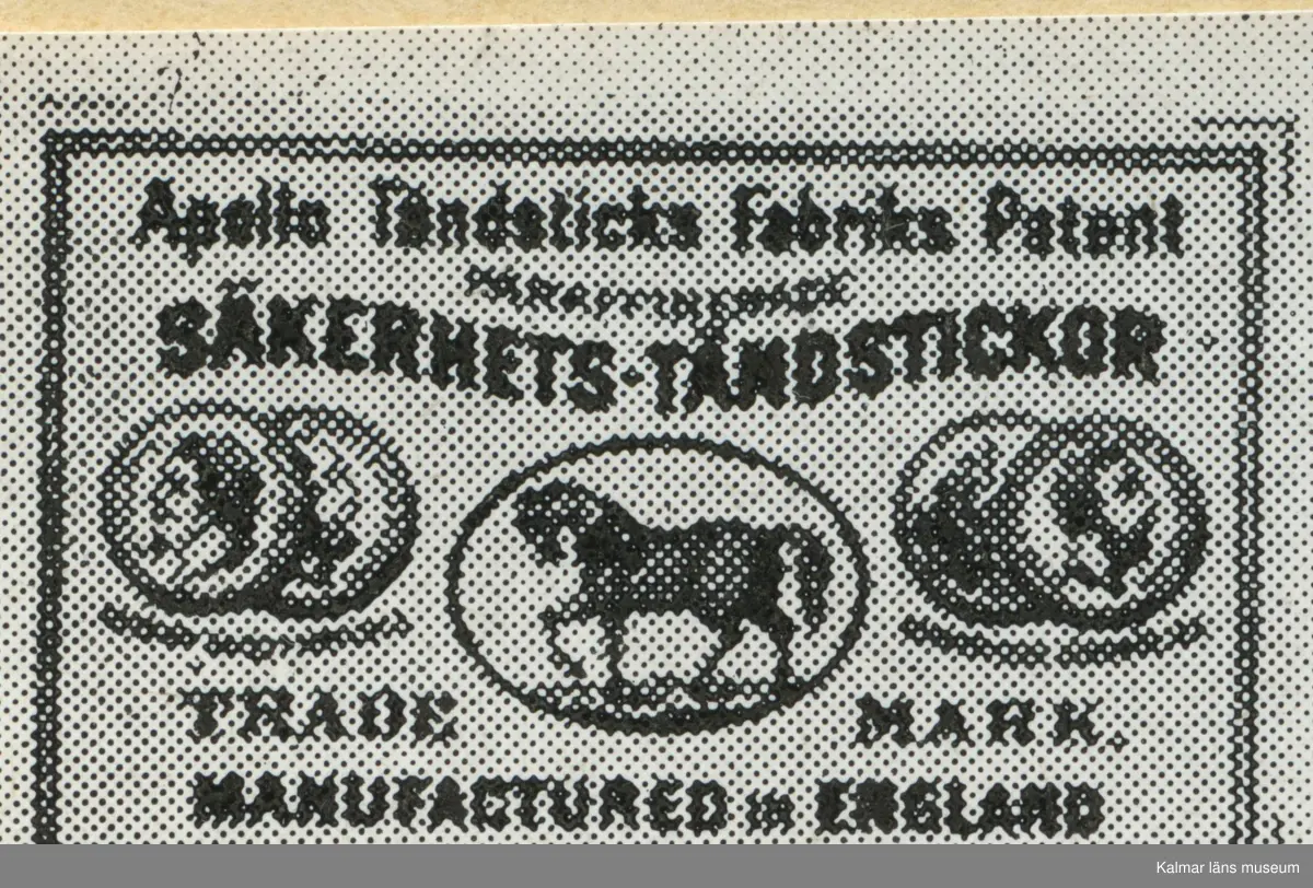 Tändsticksetikett från England, "Apollo Tändsticksfabriks Patent"