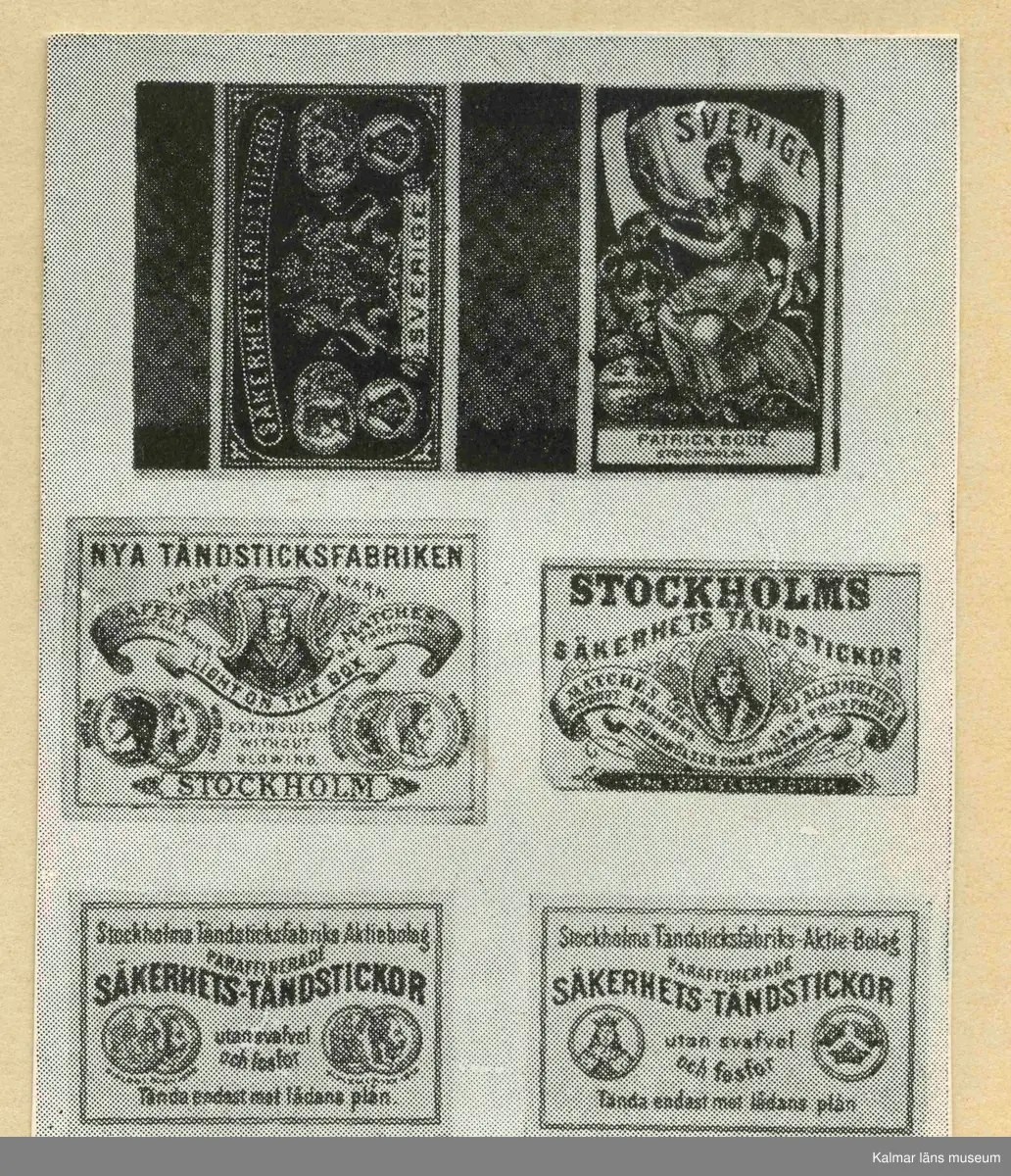 Urval av tändsticksetiketter ur Sven Johanssons "Jönköpings samlingar."