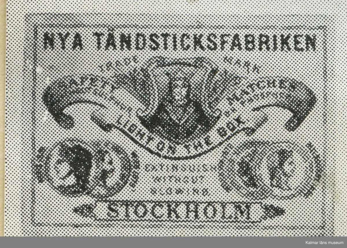 Tändsticksetikett "Nya Tändsticksfabriken, Stockholm"