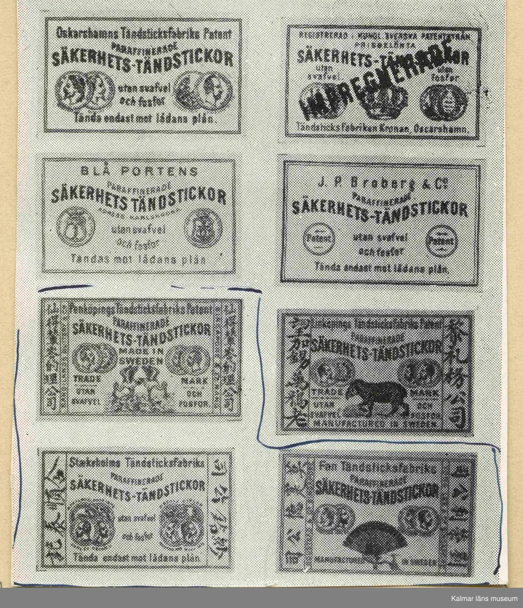 Urval av tändsticksetiketter ur Sven Johanssons "Jönköpings samlingar.@