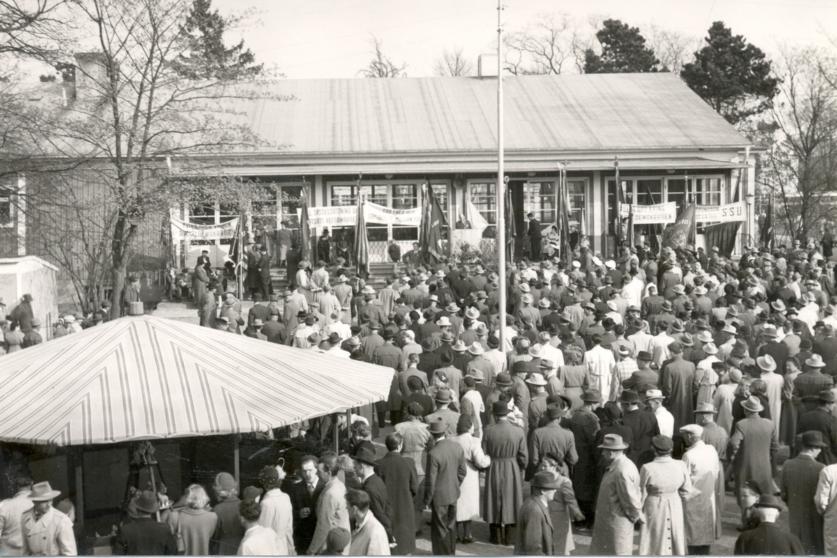En demonstration med bland annat Sveriges Socialdemokratiska Ungdomsförbund, SSU i Folkets park.