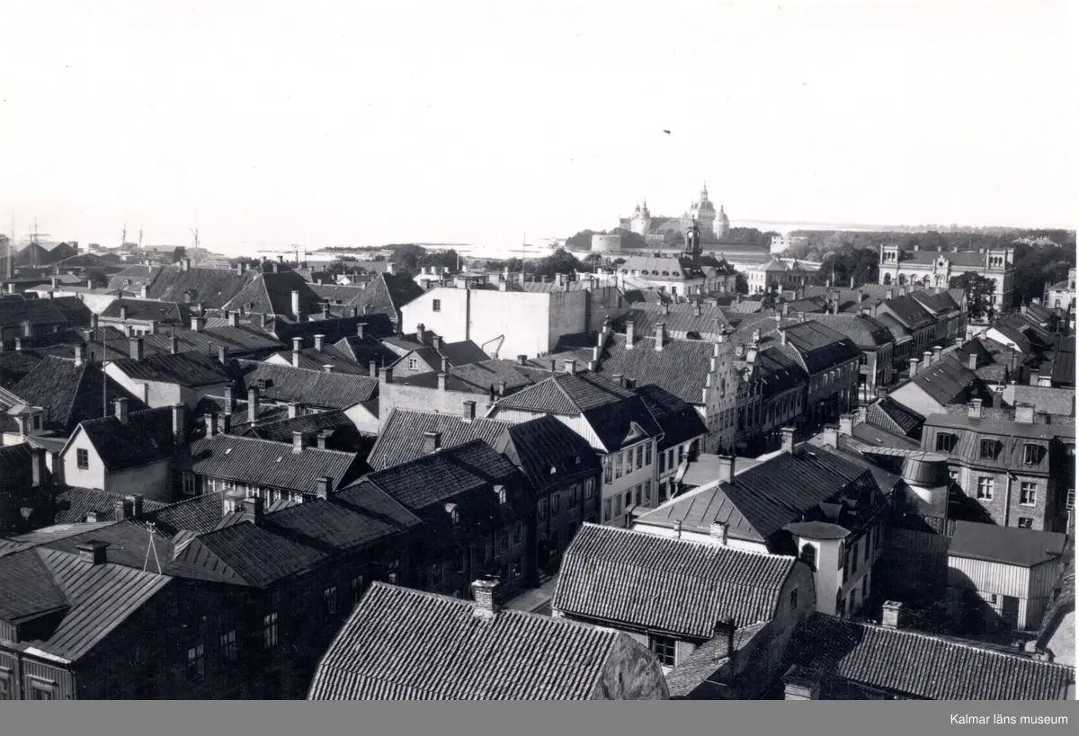 Kvarnholmen från domkyrkan mot söder. Slottet syns i bakgrunden.