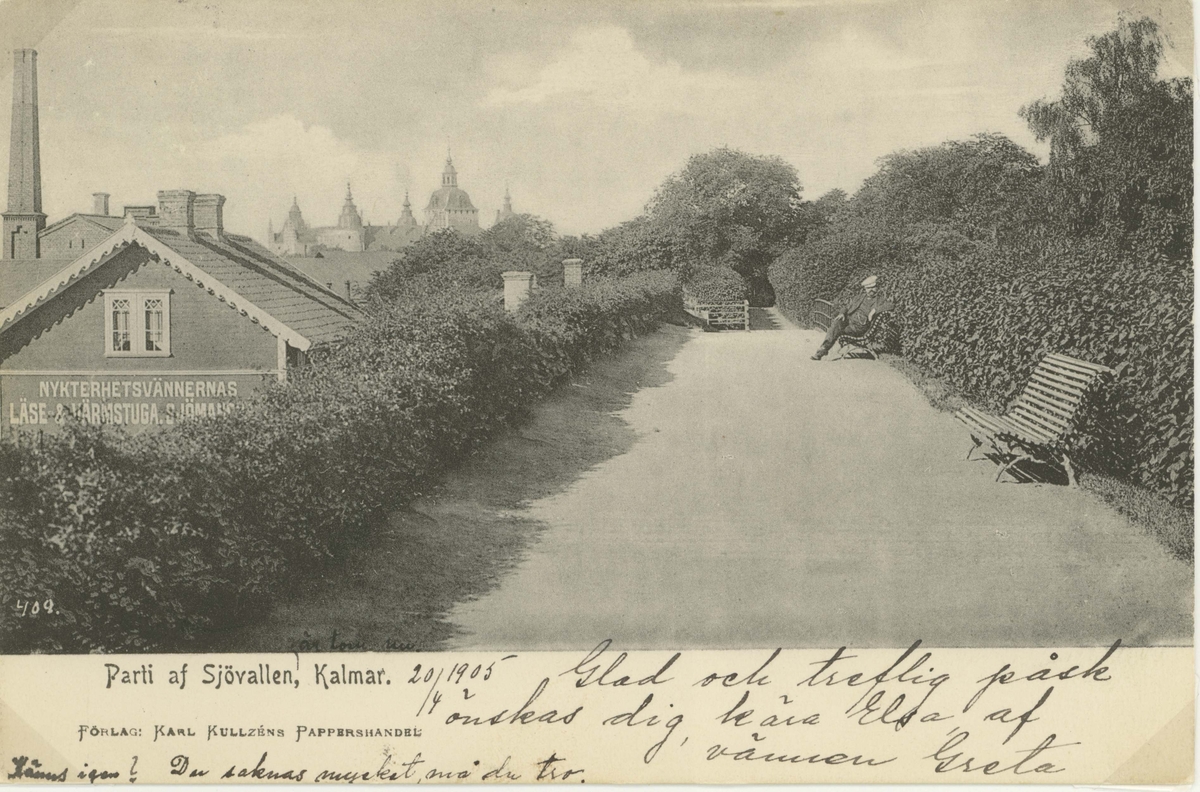 Vykort med motiv från promenadstråket på stadsmuren.