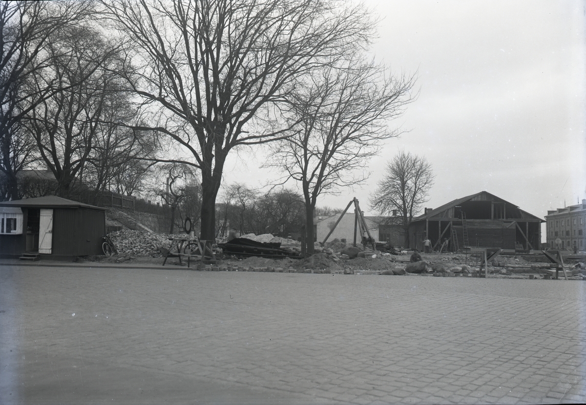 Pågående rivning av gamla gasverkets anläggningar på Kvarnholmen i Kalmar.