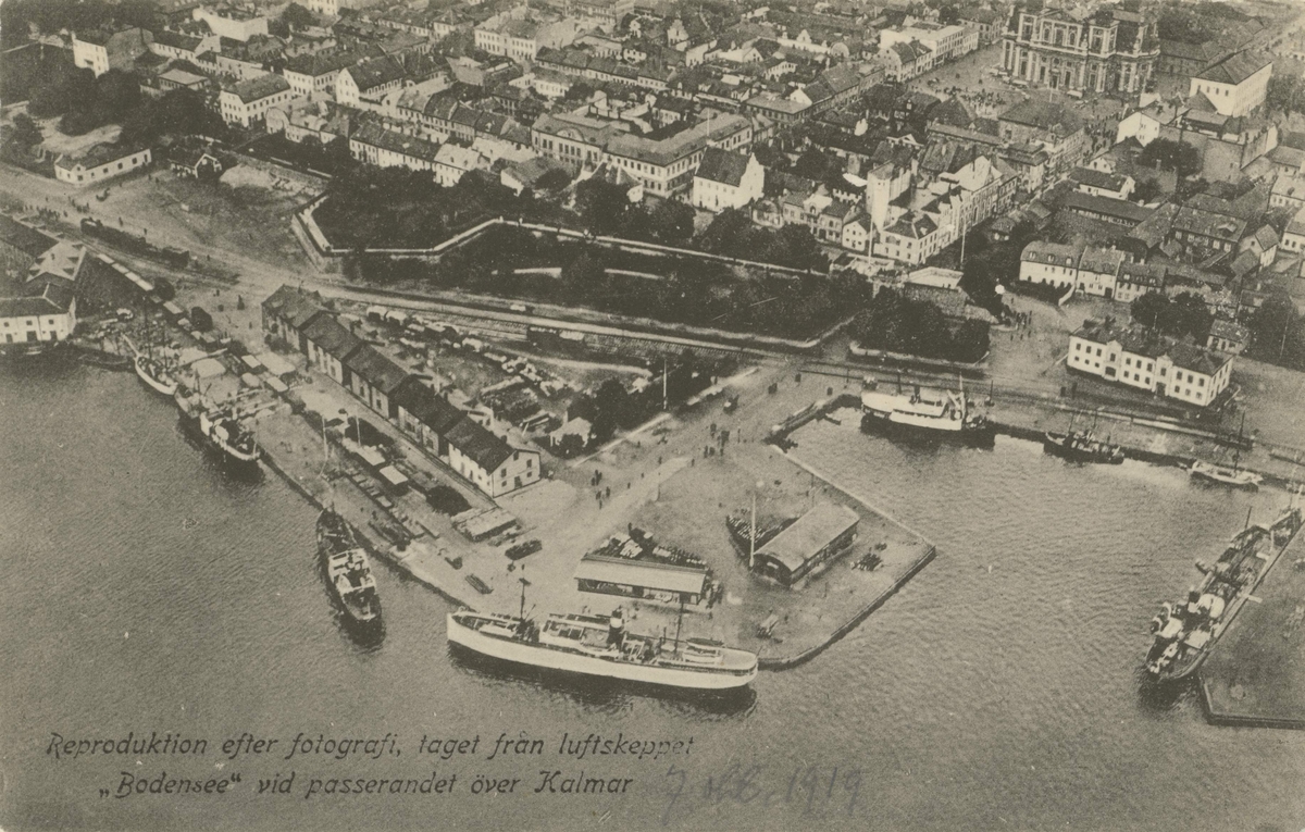 Fotot är ett av de äldsta flygfotona över Kalmar. enligt uppgift är det taget från luftskeppet Bodensee då detta 1918 flög från Berlin till Stockholm.