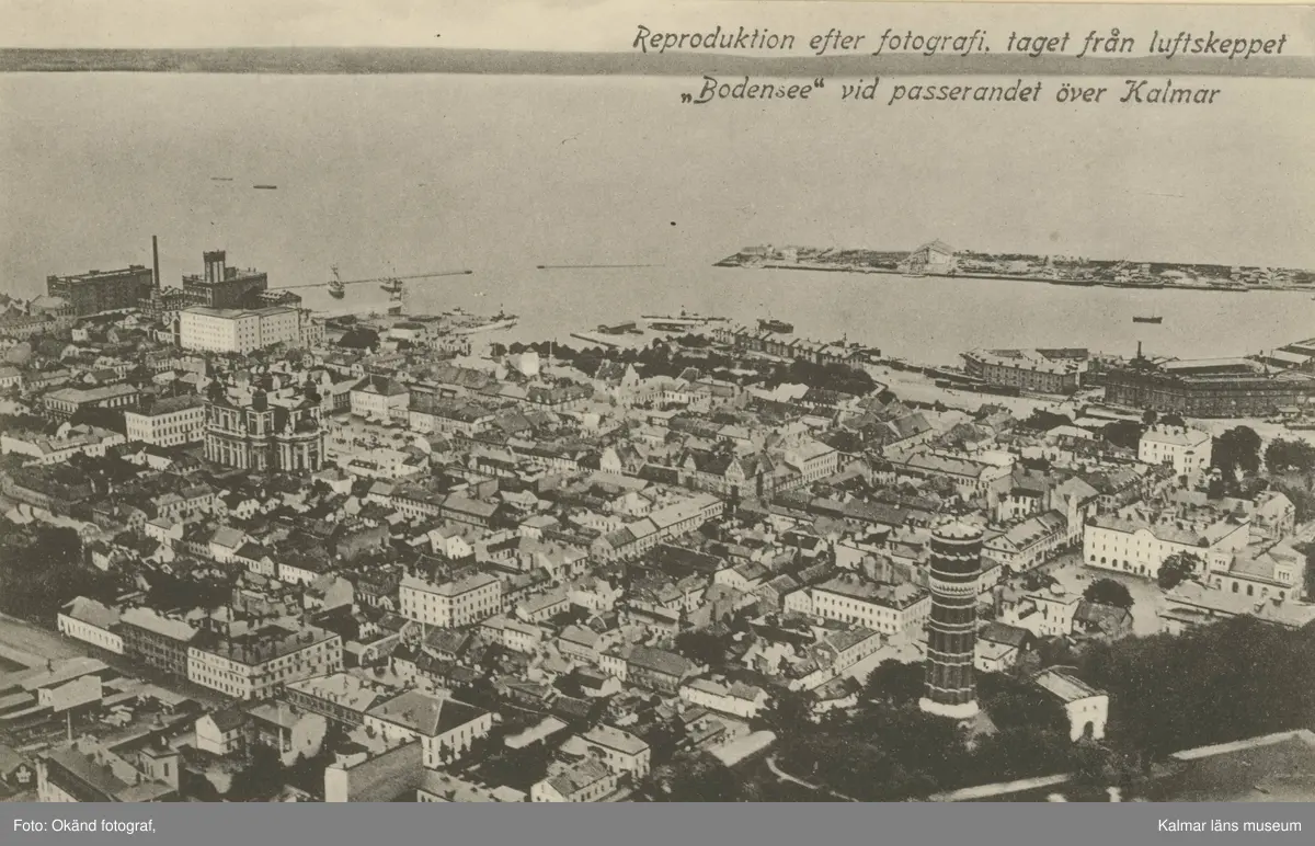 Fotot är ett av de äldsta flygfotona över Kalmar. Troligen är det taget från luftskeppet Bodensee då detta 1918 flög från Berlin till Stockholm.