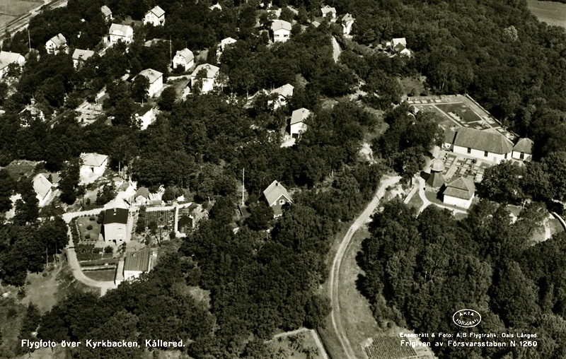 Vykort, Kållereds kyrka med omgivning - Kyrkbacken.