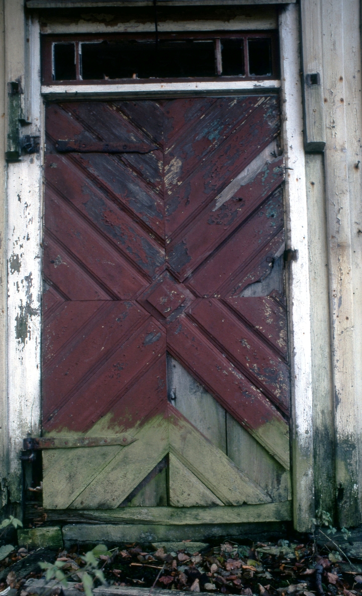 Dörr till manhuset Heljered Västergård 3:2 "Björket" år 1981. Gården flyttades från Heljereds by cirka 1860 och revs 1983. Den låg vid nuvarande Kålleredgårdsvägen. Relaterat motiv: A1600.