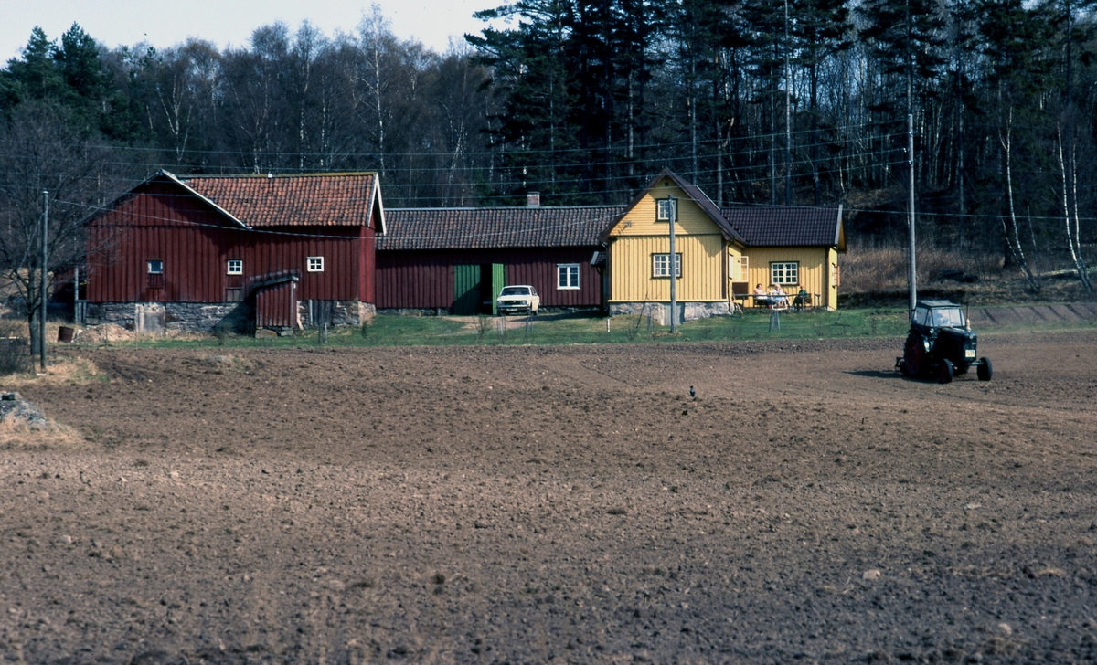 Tulebo Sörgård 2:10 år 1980. Gårdsbyggnader från 1800-talet. Del av röda huset (bakom bilen) flyttades cirka 1870 från Livereds By. Ägarna flyttade då från Livered till Sörgården av okänd anledning.