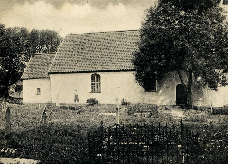 Vykort skickat 1904, Kållereds kyrka och kyrkogård ca. 1900.