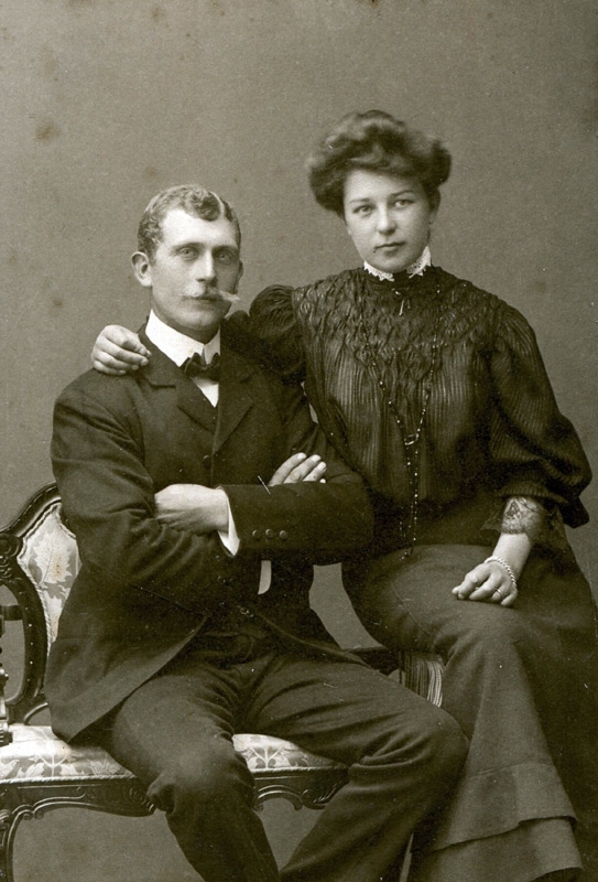 Ateljéporträtt av lantbrukare David Johansson (född 1882 i Heljered Mellangård, död 1953) och Davida Johansson (född 1888 i "Majas" Livered, död 1931).