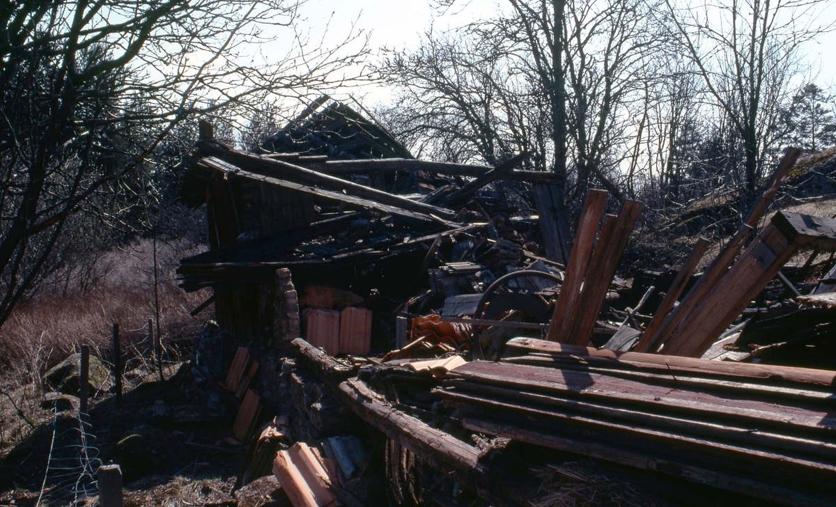 Torpet Vommedal Östergård år 1980. Platsen för ett båtsmanstorp. Siste båtsmannen Engelbrekt Apel byggde ett torpställe här på "Jönses" mark Vommedal Östergård. Nedrivet. Relaterat motiv: A1739.