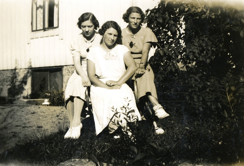 Sporred 1:12 "Emils" okänt årtal. Från vänster: okänd, Signe Larsson Gjörloff samt systern Gunhild Larsson Melin.