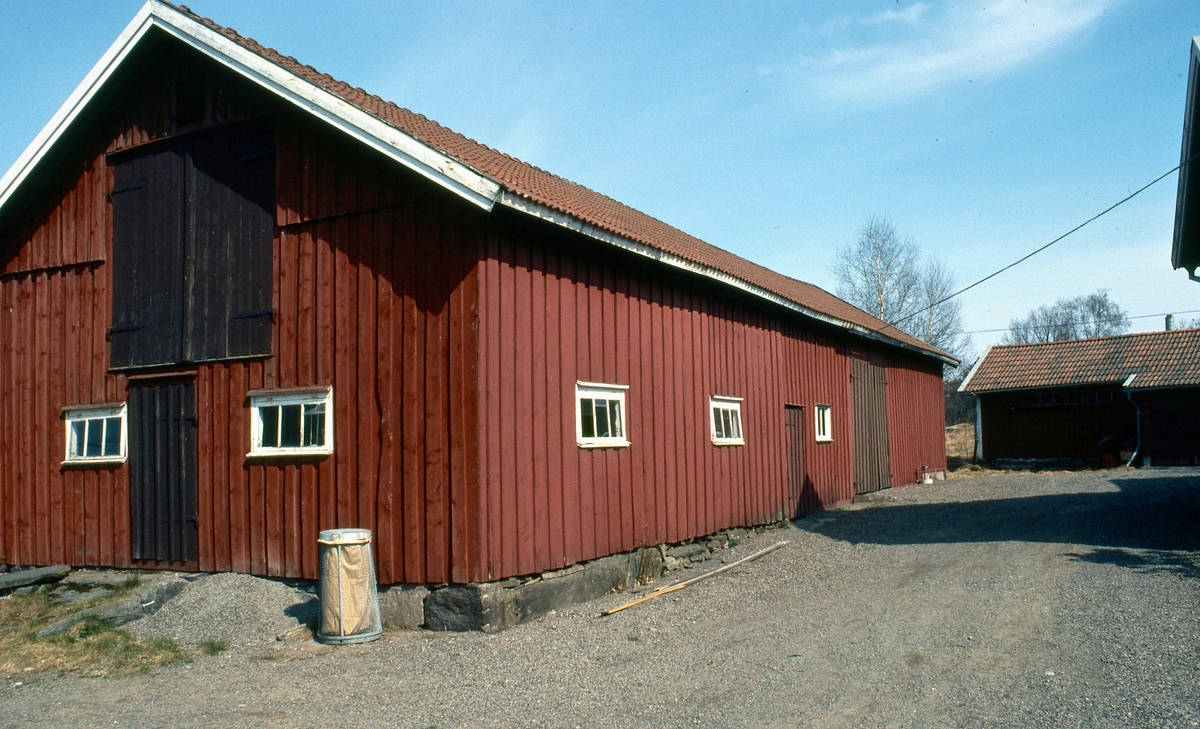 Tulebo Nordgård 1:3 "Arons", "Nilssons" år 1980. Ladugård byggd 1860 - 70. Bakom denna går Tulebovägen.
