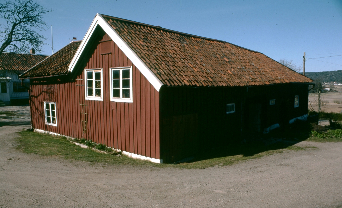 Heljered Mellangård 1:2 "Storebörjes" år 1978. Faluröd ladugård med vita knutar, uppförd cirka 1860.