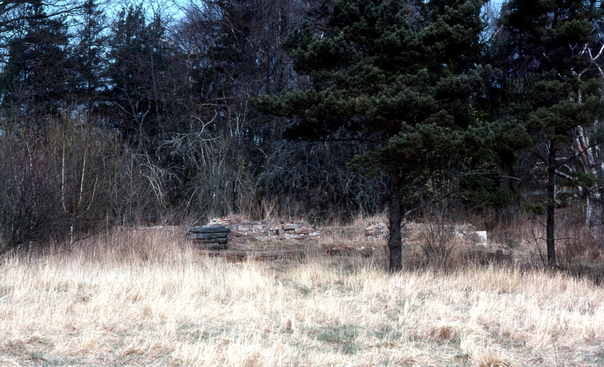 Gårdstomt med boningshus i mitten, Apelgården 1:6 "Lottas" år 1978. Ladugårdsgrunden ses till vänster. Allt revs cirka 1965.