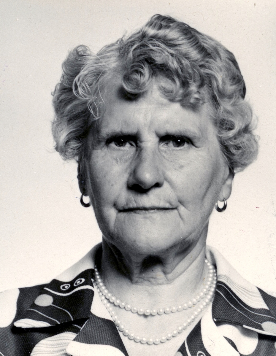 Gurli Bengtsson (1902 - 1993) som fotograferades då hon tog körkort år 1973. Hon bodde i Vommedal Västergård "Hansen" på Streteredsvägen 7.