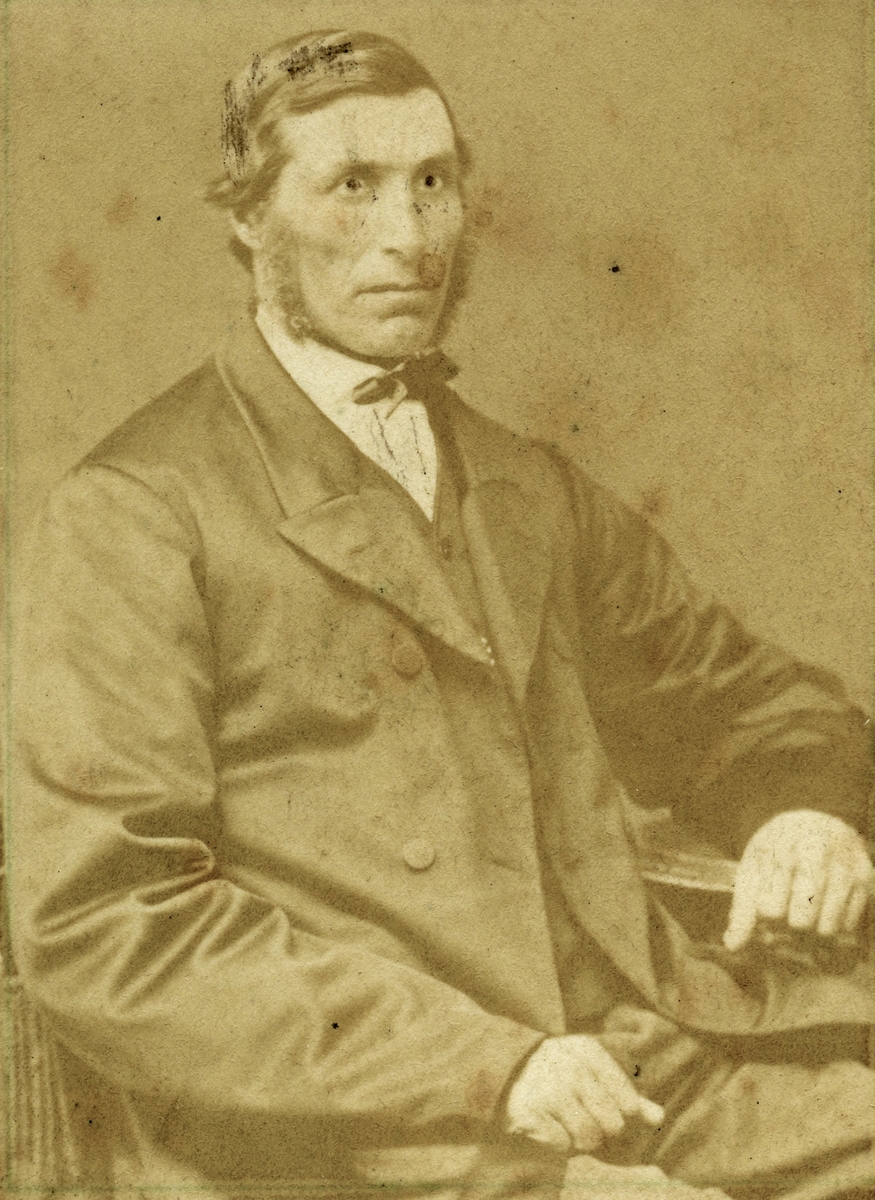 Ateljéporträtt av Anders Petter Hansson (född 1825 i Sjösala, Fässberg, död 1875 i Livered "Majas"). Gift med Johanna Maria Andersdotter i Livered och fick fem (5) barn. Han utvidgade gården och byggde till husen i Livered.