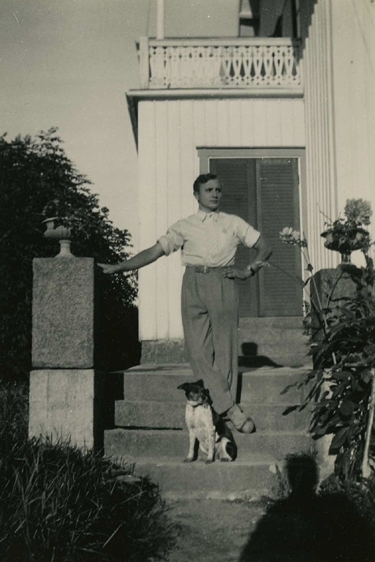 Albert Eklund (f. 1913 d. 2005) står utanför Sagereds gård cirka 1935 - 40. Han var son till Gustava och Carl Eklund. Gift med Inga Börjesson.