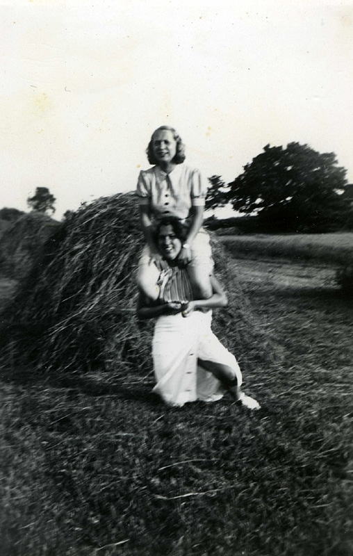 Inga Lill Dahlberg Börjesson f. 1915 och Eivor Dahlberg Bjerrhede f. 1921. Systrar och sommargäster från Burås, Gbg hos Fredrikssons och Nilssons.