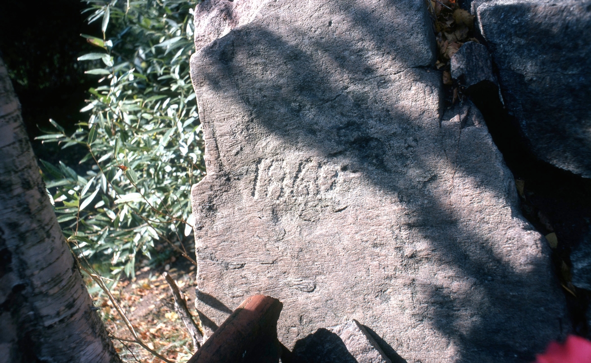 Vommedal Västergård 3:3 "Hanses" (Streteredsvägen 7) år 1979. En sten med inristningen 1860 vilket var ladugårdens byggnadsår. Stenen ligger bredvid ladan. Relaterat motiv: A1681.
