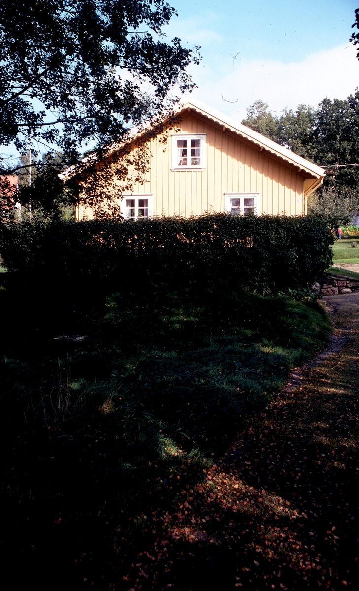 Vommedal Östergård 2:59 "Petters" (nu: Streteredsvägen 43) år 1980. Boningshusets gavel mot landsvägen. Relaterat motiv: A0917 och A1701.